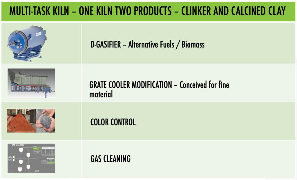 The use of technologies such as the D-Gasifier or D-FBed Gasifier, as well as calcined clay lines represent important paths toward carbon-neutral production and clinker lines that can achieve up to 100% TSR. While the ash retention enables the use in white clinker production, the gas cleaning technology improves environmental performance